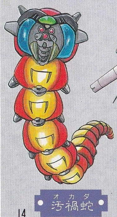 Okadas appear as floating robotic centipedes. They move in the direction of the player, having no actual attacks beyond that.